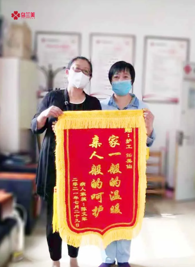 “我就是一個普通的農民,沒有什么特殊的經歷,但自從做了護工之后對我生活確實有很大的變化——增加了家庭經濟收入來源。通過將近一年在醫(yī)院陪護病人的經歷,讓我見識到了生命的堅強和脆弱,也讓我認識到生命的珍貴!”獲得錦旗的她略顯激動的說:“感謝烏蘭美健康集團為我們這些沒有一技之長的人提供就業(yè)平臺,也感謝所有在工作中幫助過我的人?,F在,我可以將所學到的知識幫助到更多需要幫助的人。”